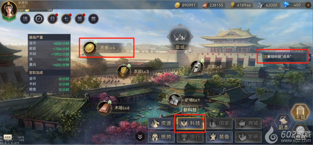 3. 科技要及时升级,每一个科技对军队的加成都是极大的。